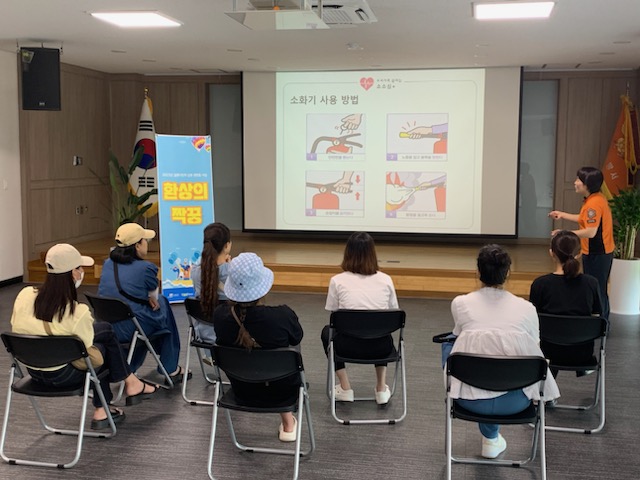 이번 교육은 ▲ 화재 발생 시 대피요령 ▲ 심폐소생술 및 응급처치 요령 ▲ 119신고방법 교육 ▲ 등의 순서로 이뤄졌습니다.
