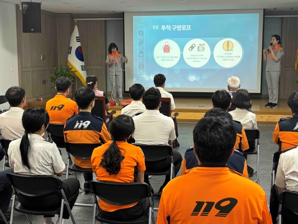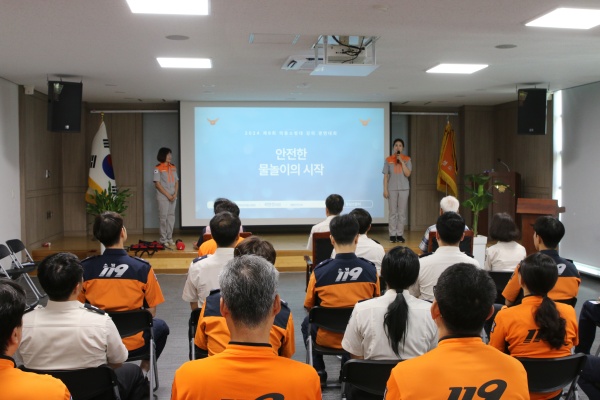 이날 시연회에서는 우천여성의용소방대 곽현정 대원이 ‘안전한 물놀이의 시작’을 주제로 직접 준비한 교안을 이용해 강의를 펼쳤습니다.