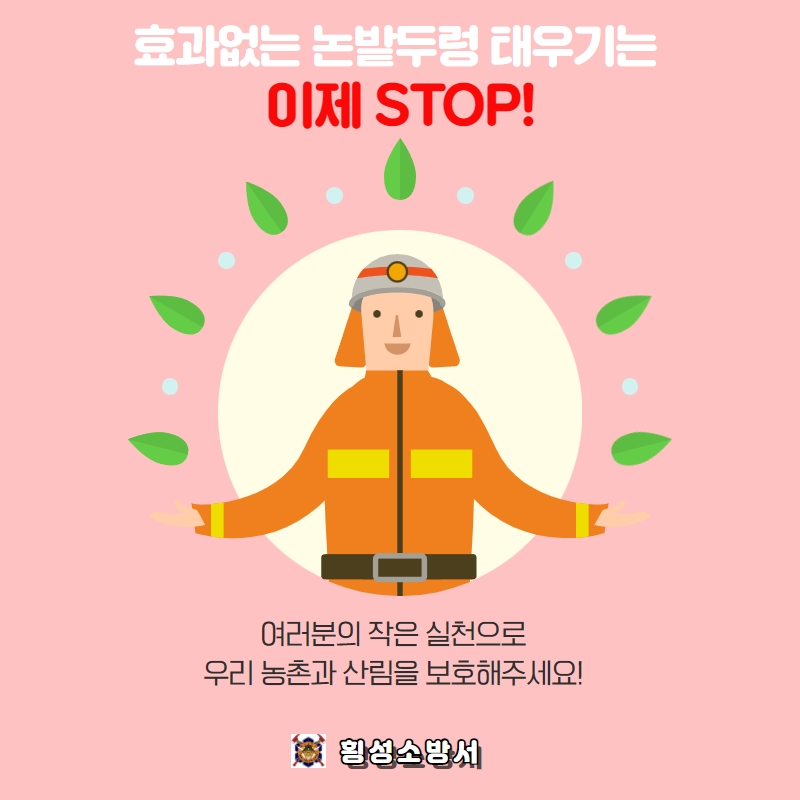 | 2727 | 횡성소방서, 봄철 논ㆍ밭두렁 소각 화재 주의 당부 | 횡성홍보 | 2022-04-04 | 608 | |