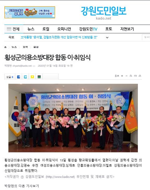 | 2401 | 횡성군의용소방대장 합동 이취임식 | 예방민원계 | 2020-01-14 | 742 | |