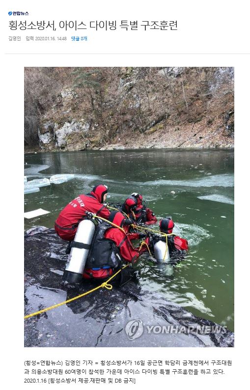 | 2403 | 횡성소방서, 아이스 다이빙 특별 구조 훈련 | 예방민원계 | 2020-01-27 | 678 | |