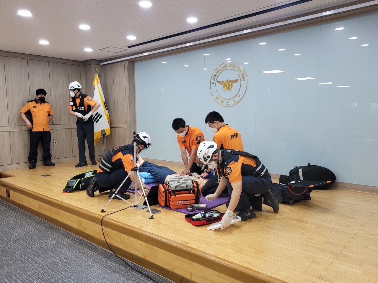 제34회 전국소방기술경연대회(구급분야) 출전에 앞서 아래의 사진과 같이 시연회를 실시했습니다.