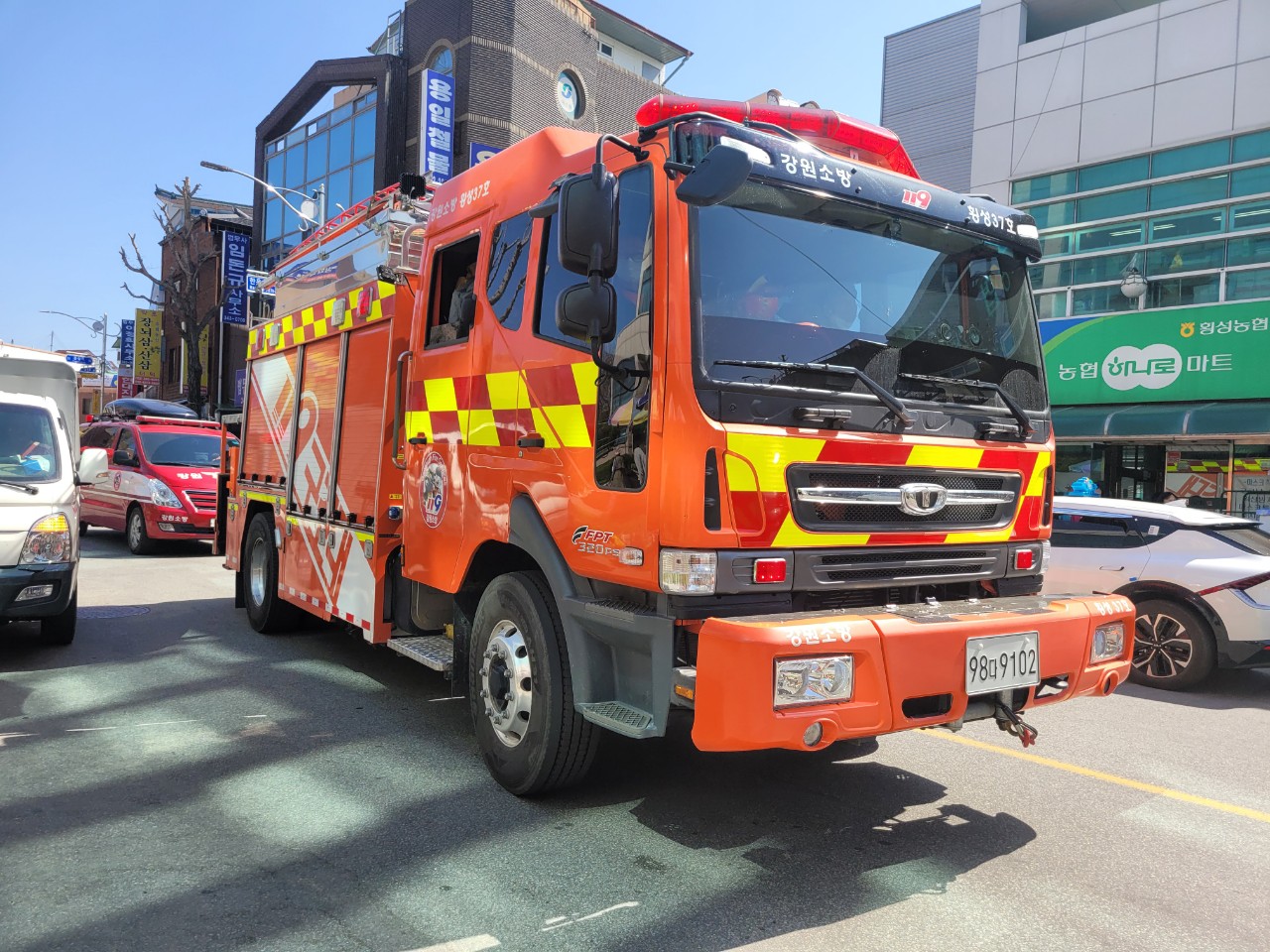 횡성소방서는 금일 오후 각종 사고 등 현장 출동 시 골든타임 확보를 위해 소방차 길 터주기 훈련을 실시했습니다.