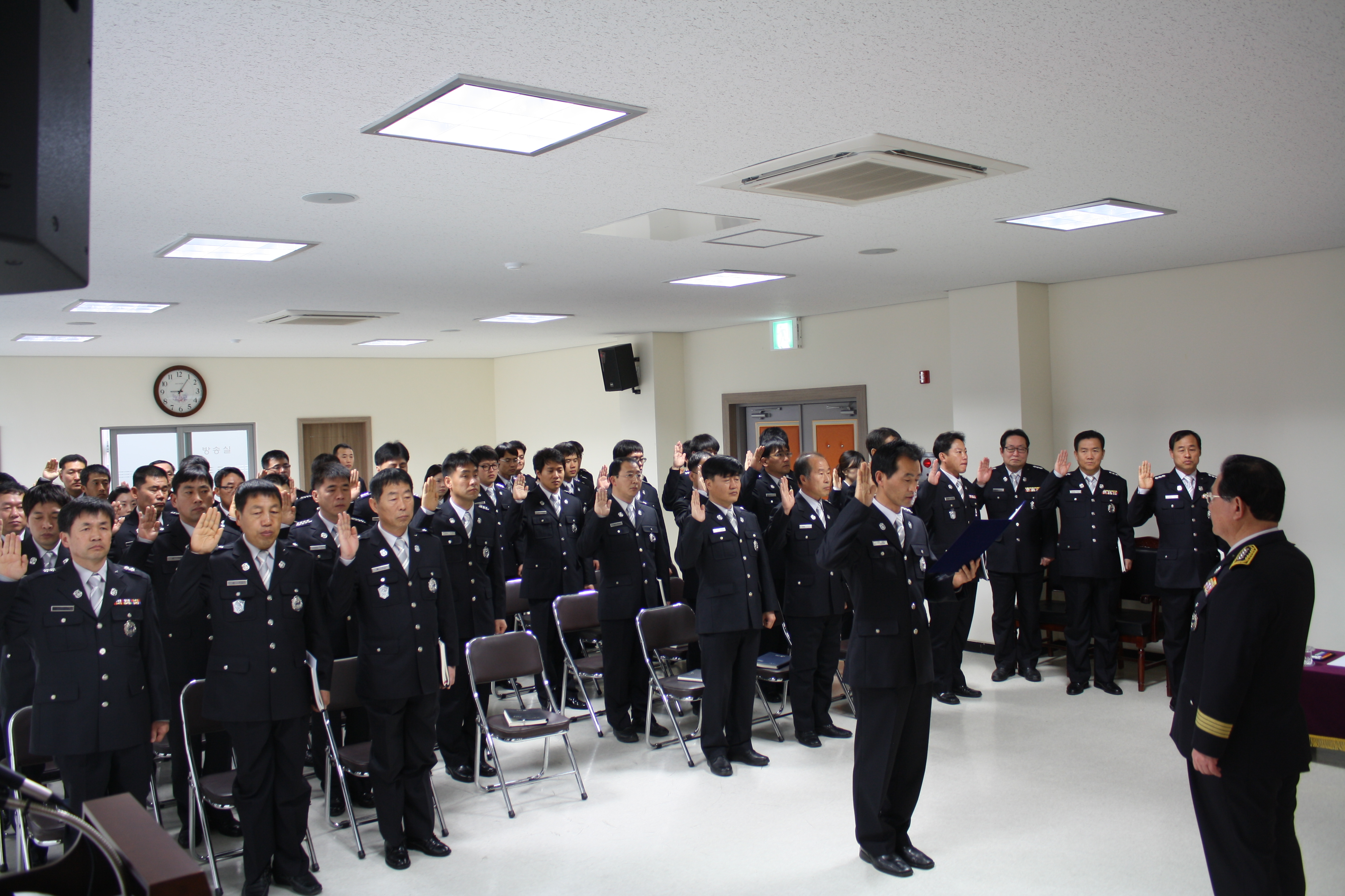 소방활동 안전관리 기본원칙을 준수하여 금년도 안전사고 제로화 달성을 위한 서장님의 특별강연과 함께 전직원은 안전사고 예방 결의문을 채택하였다