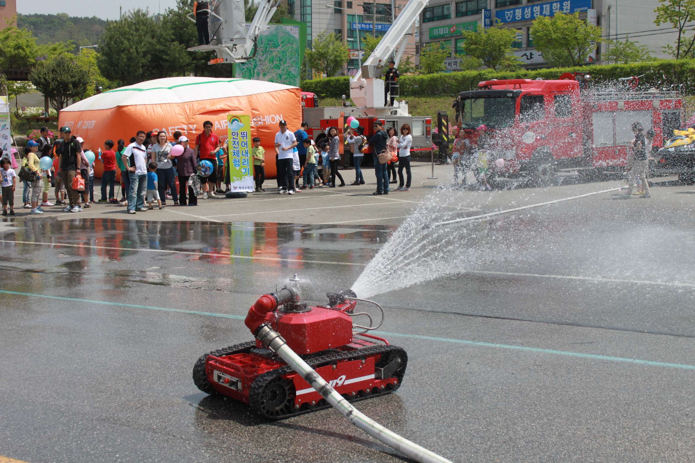 횡성소방서(서장 조근희)는 5일(토), 6일(일) 오전 09:00~오후 17:00 2일간 횡성종합운동장에서 제 90회 어린이날 및 제5회 평생학습축제를 맞이하여 어린이 및 학부모 등 약 7천여명을 대상으로『함께해요~119소방안전체험』캠프를 운영했습니다.. 이날 소방체험캠프는 각 3개 분야 13코너로 구성되어 소방헬기 탑승체험 및 연기체험텐트, 비상탈출 낙하체험, 이동소방안전체험차량, 물소화기, 심폐소생술로 구성된 도전119체험장, 호버크래프트 및 무인방수로봇 등 최신 화재진압?구조장비 및 불조심 우수작품 전시로 이루어진 119소방전시장, 소방관과 함께하는 페이스페인팅, 소방마스코트와 기념촬영, 119소방안전 OX퀴즈, 캐릭터 풍선 나눠주기 등 119이벤트장으로 다채로운 행사가 펼쳐져 어린이들의 많은 참여가 이루어졌습니다. 특히, 성북초등학교 119소년단의 소방헬기 탑승체험, 페이스페인팅 체험과 비상탈출 낙하체험, 이동소방안전체험 등이 어린이들의 인기를 끌었습니다. 체험을 즐기는 어린이들의 밝은 얼굴을 보면서 행사에 참여한 직원 모두 힘들었지만 행복한 날이었습니다.