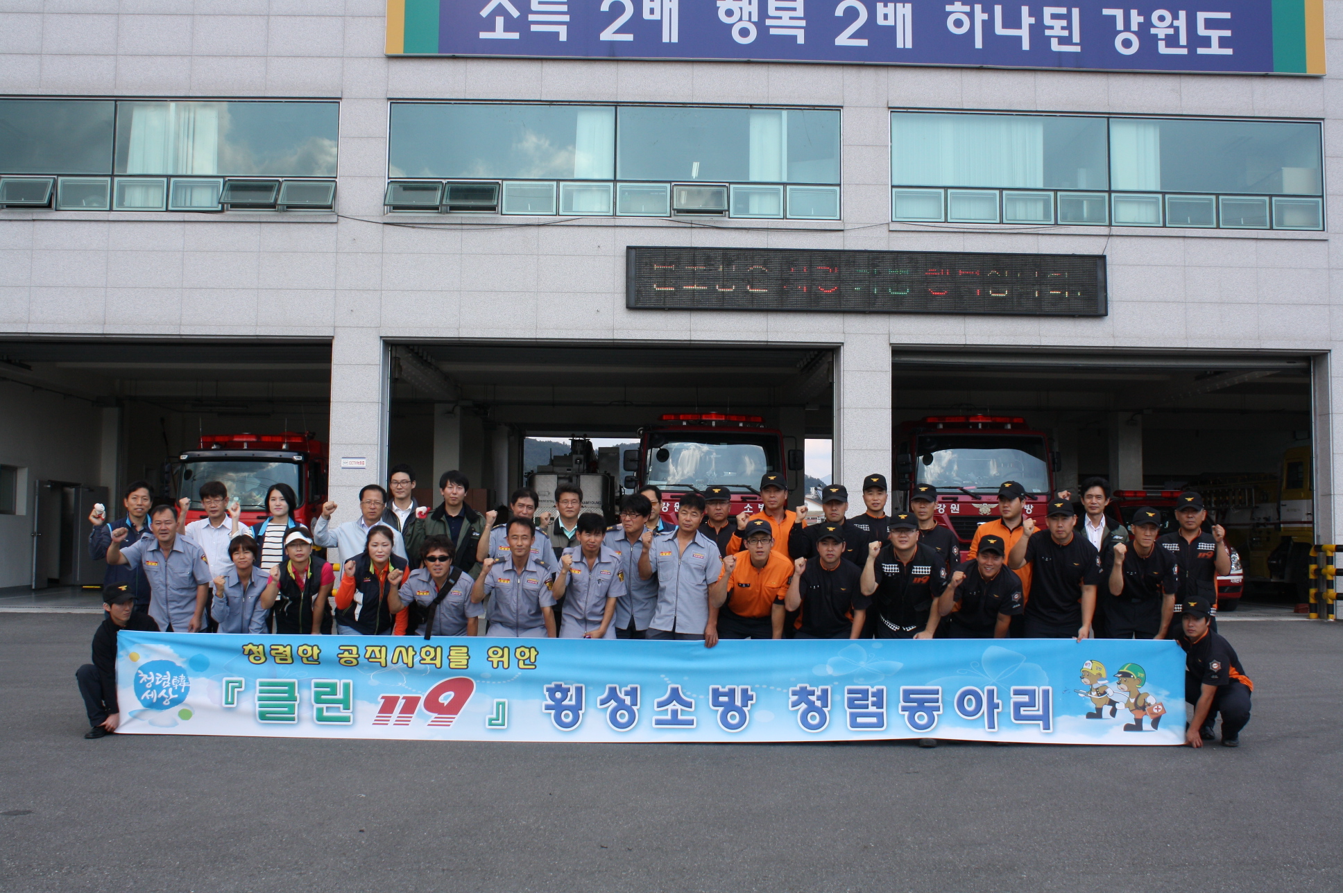 횡성소방서(서장 정은철)는 20일 14시부터 섬강변(전천교 ~ 횡성교) 및 청사주변 국토대청결 운동실 실시했다. 직원 및 의용소방대원 등 50여명이 참가하여 하천부지 쓰레기 등 오물을 제거했으며, 깨끗한 환경을 가꾸는데 결의도 다짐했다.
