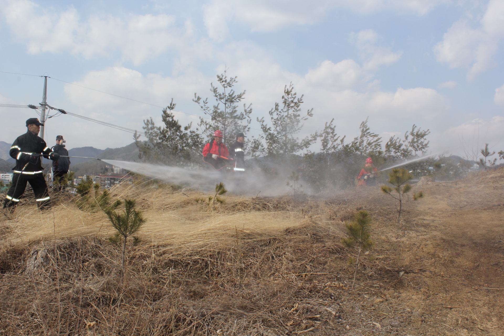 횡성소방서(서장 이병은)는 6일(목) 14시부터 횡성군 횡성향교에서 횡성군청 임대헬기, 소방차 등 장비 10대와 인원 38명이 동원되어 산불 연소확대 방지 화재진압훈련을 실시했다.