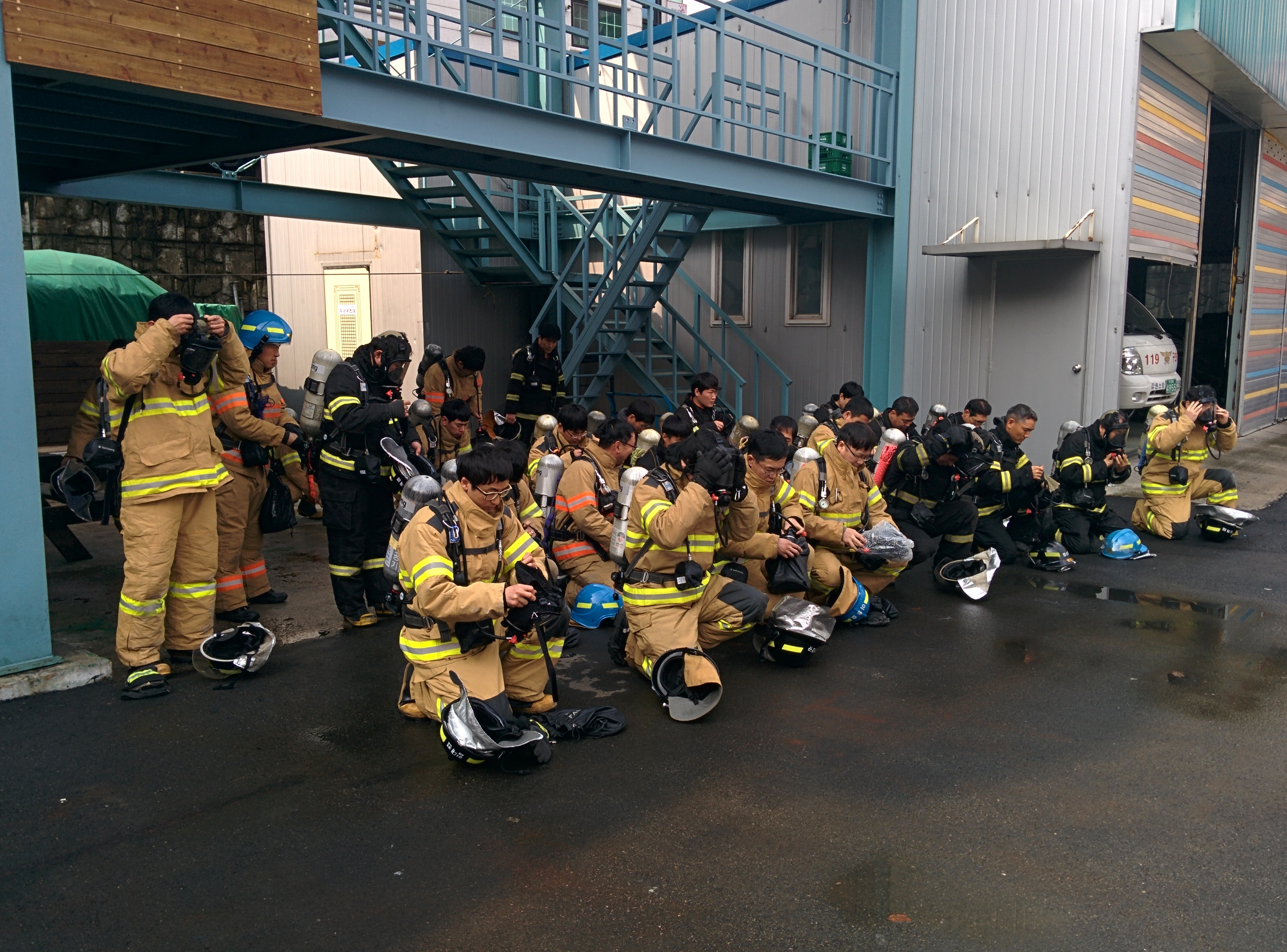실물화재 진압 훈련은 화재진압과 인명구조가 열악한 소방현장을 가상한 훈련을 통하여 현장대응 및 안전역량을 강화하기 위한 훈련으로 화재진압대원 및 구조대원이 2인 1조로 연기발생기․화레이 작동으로 농연과 열기가 있는 화재현장 구현된 농연장에 진입하여 인명검색, 요구조자 구조, 탈출을 통하여 현장 활동 시 안전강화 및 팀워크 향상을 위하여 계획되었다.