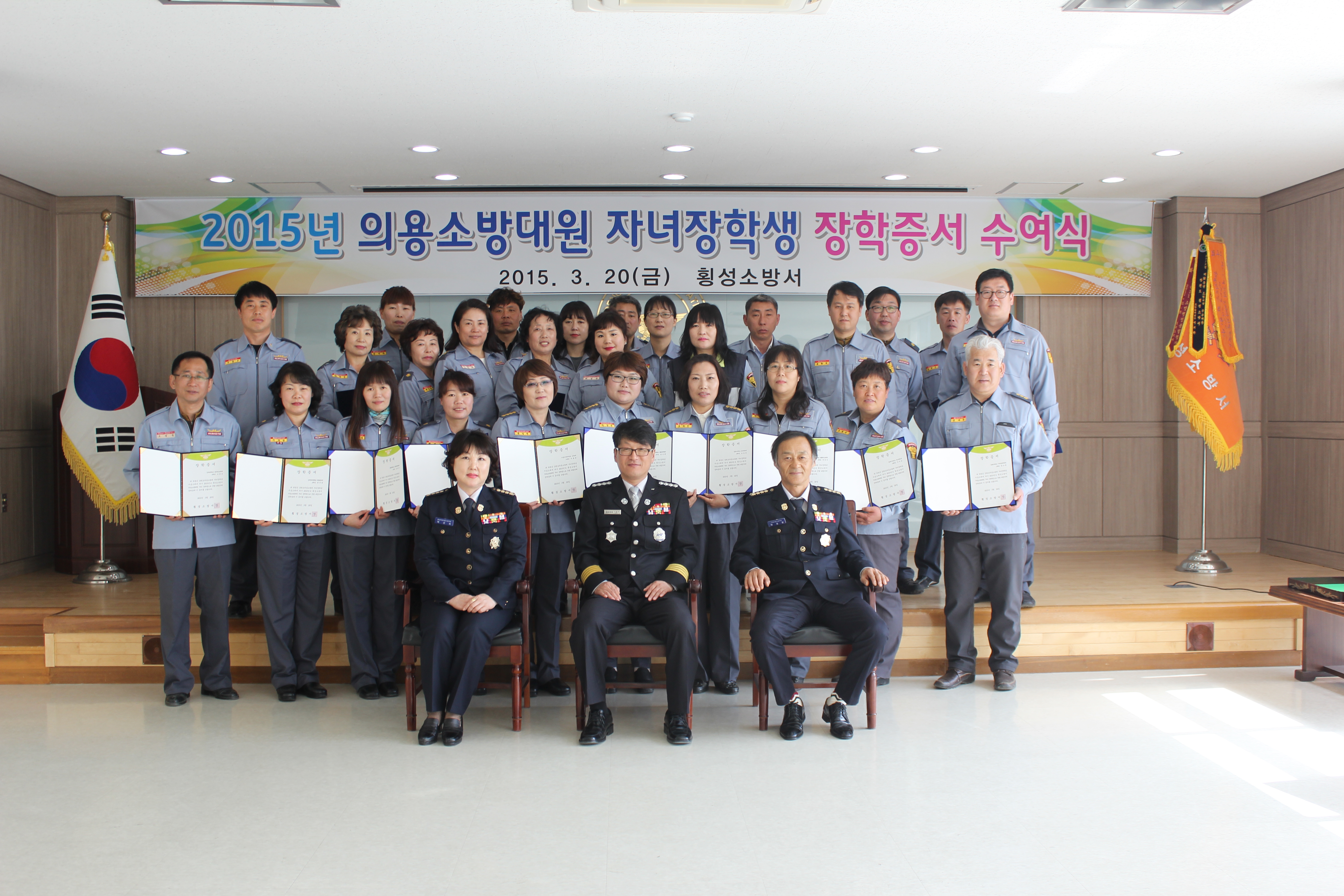 횡성소방서(서장 이병은)는 20일 오후 1시 30분부터 소방서 대회의실에서 의용소방대원 자녀 장학증서 수여식을 가졌다.