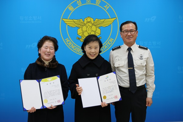 군민의 귀중한 생명과 재산을 보호하는데 앞장선 석혜정, 이종순 씨에게