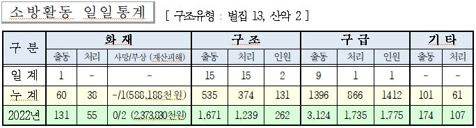 ○ 구조 15건(벌집 13, 산악 2)