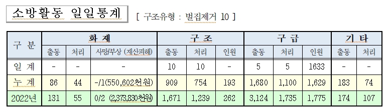 ○ 구조 10건(벌집 10)