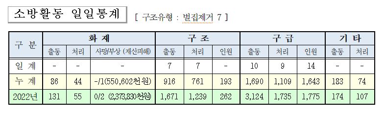 ○ 구조 7건(벌집 7)
