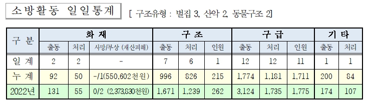 화재 2건(기타화재 2)