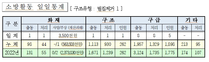 ○ 구조 1건(벌집제거 1)