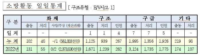 ○ 구조 1건(E/V사고 1)