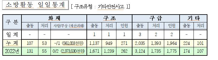 ○ 구조 1건(기타안전사고 1)
