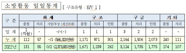 ○ 화재지원 1건(기타화재 1)