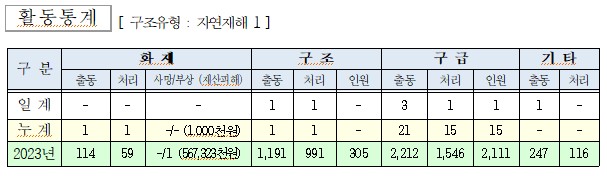 ○ 구조 1건(자연재해)