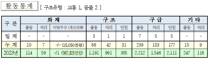 ○ 구조 3건(교통 1, 동물 2)