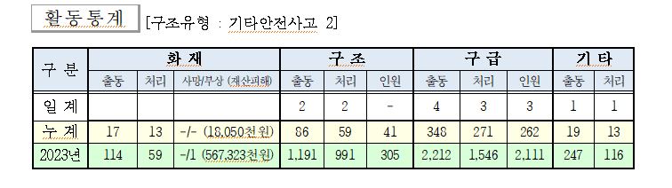 ○ 구조 2건(기타안전사고 2)