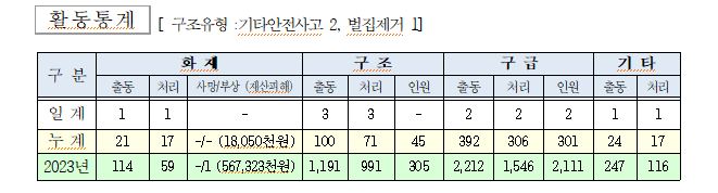 ○ 구조 3건(기타안전사고 2, 벌집제거 1)