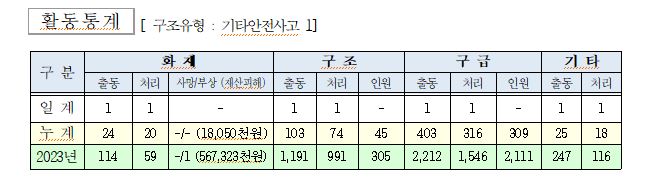 ○ 구조 1건(기타안전사고 1)