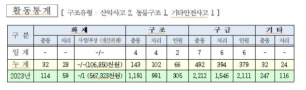 ○ 구조 4건(산악사고 2, 동물구조 1, 기타안전사고 1)