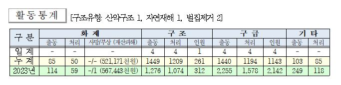 ○ 구조 4건(기타안전사고 1, 벌집제거 2, 자연재해 1)