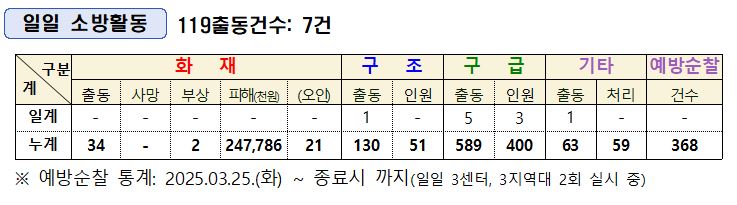 인제소방서 일일소방상황(5. 3.)