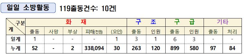 인제소방서 일일소방상황(6. 25.)