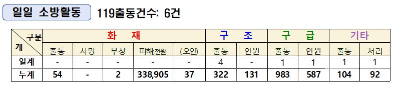 인제소방서 일일소방상황(7. 11.)