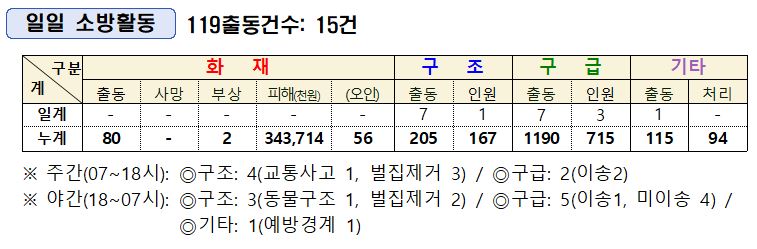 ○ 구조 7건 [동물구조 1, 벌집제거 5, 교통사고 1]