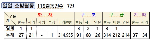 ○구조 3건[벌집제거1, 기타안전사고2]