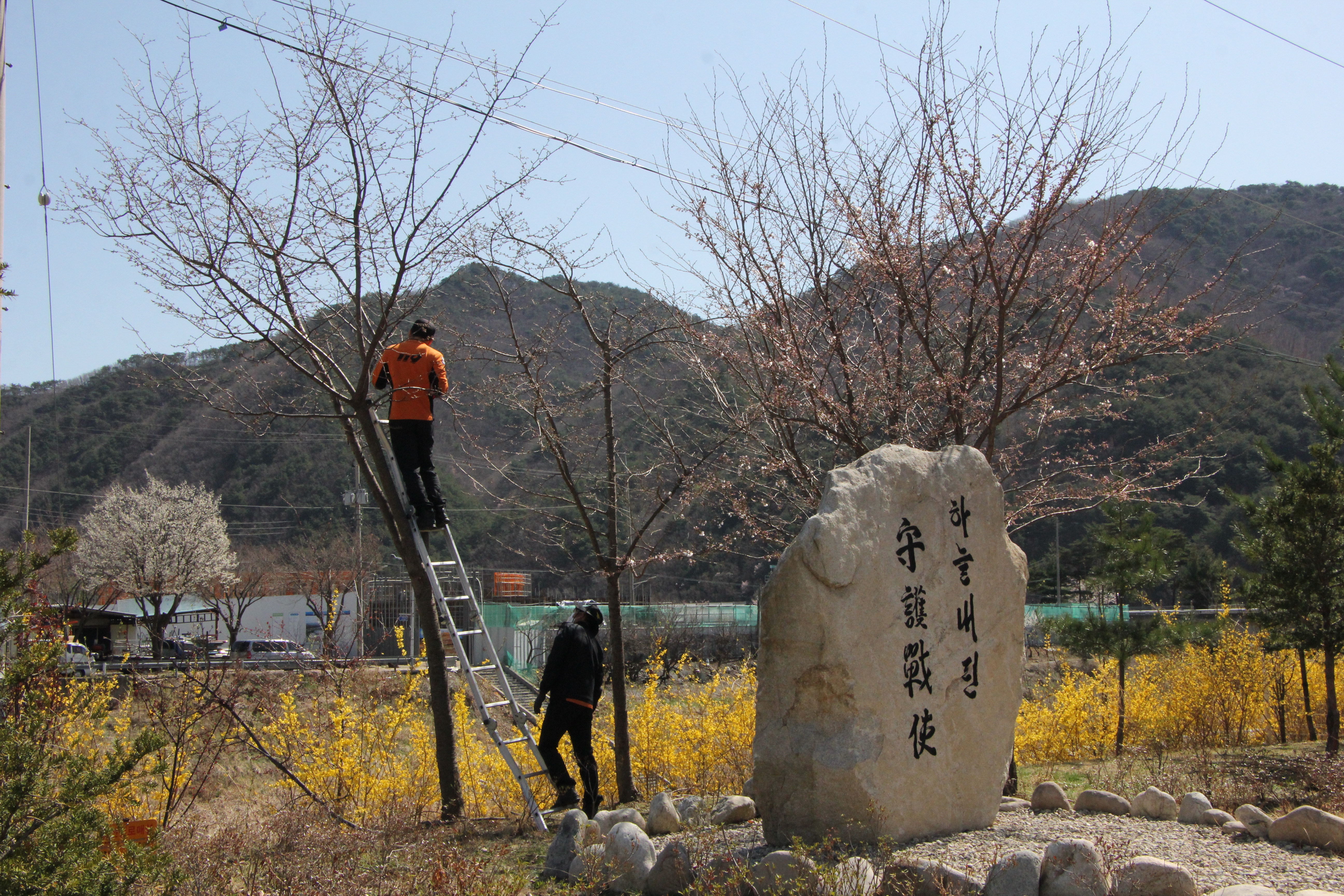 소방서는 화단에 비료를 뿌리고 나무들을 가볍게 전정하는 등 청사주변을 쾌적하게 조성했다.