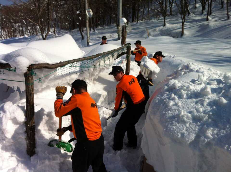 2014년 2월 15일 인제소방서(서장:김용락) 공무원과 의용소방대 60여명이 폭설로 뒤덮인 고성군 간성읍 탑동마을에서 제설․ 복구작업을 하고 있다.