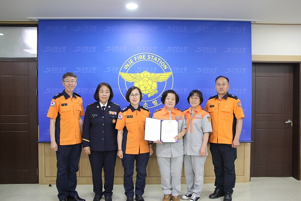 김정희 인제소방서장은“15여 년간 의용소방대원으로서 지역주민들의 생명과 재산을 보호하고 지역사회의 발전을 위해 헌신적으로 봉사하신 조예숙 의용소방대원의 노고에 감사드린다.”라고 전했다.