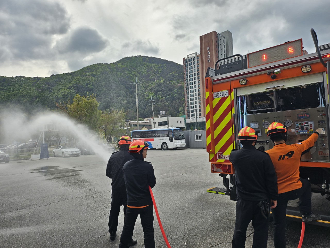 험지펌프차 운영을 위한 주된 교육 내용으로는 ▲차량 조작(범퍼방수총 사용) ▲도로 주행연습(4룬, 경사면) ▲산화펌프 및 고압방수 조작 ▲배기가스 처리장치 조작 등으로 운전원의 차량 운전 능력을 고려해 이루어졌다.