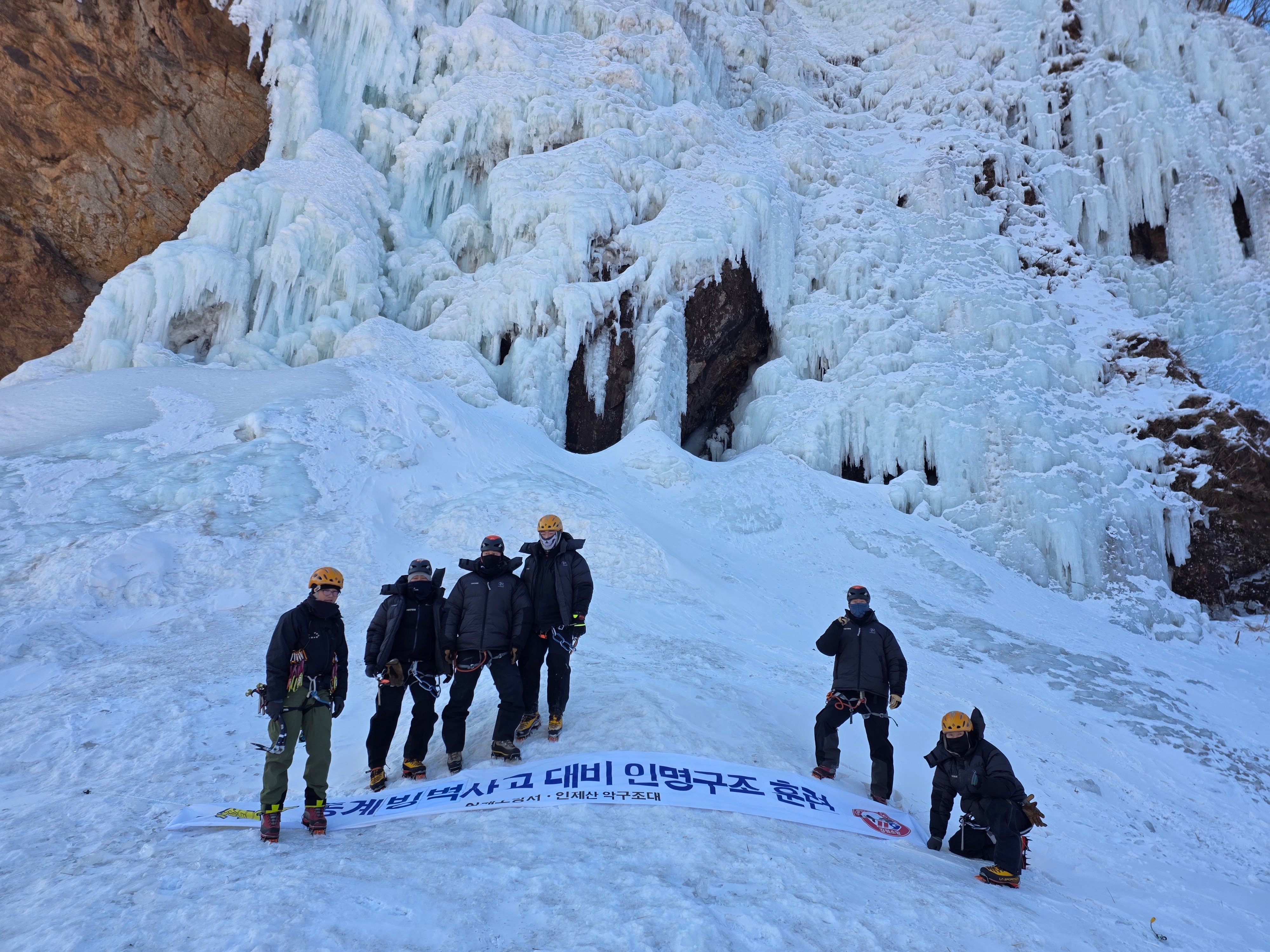 훈련 주요 내용은 ▲빙벽등반 시 올바른 보행법 및 자세 교육, ▲구조 활동 시 필수적인 확보물 설치 방법, ▲안정적인 구조를 위한 앵커 구축 훈련 등으로 구성됐다.