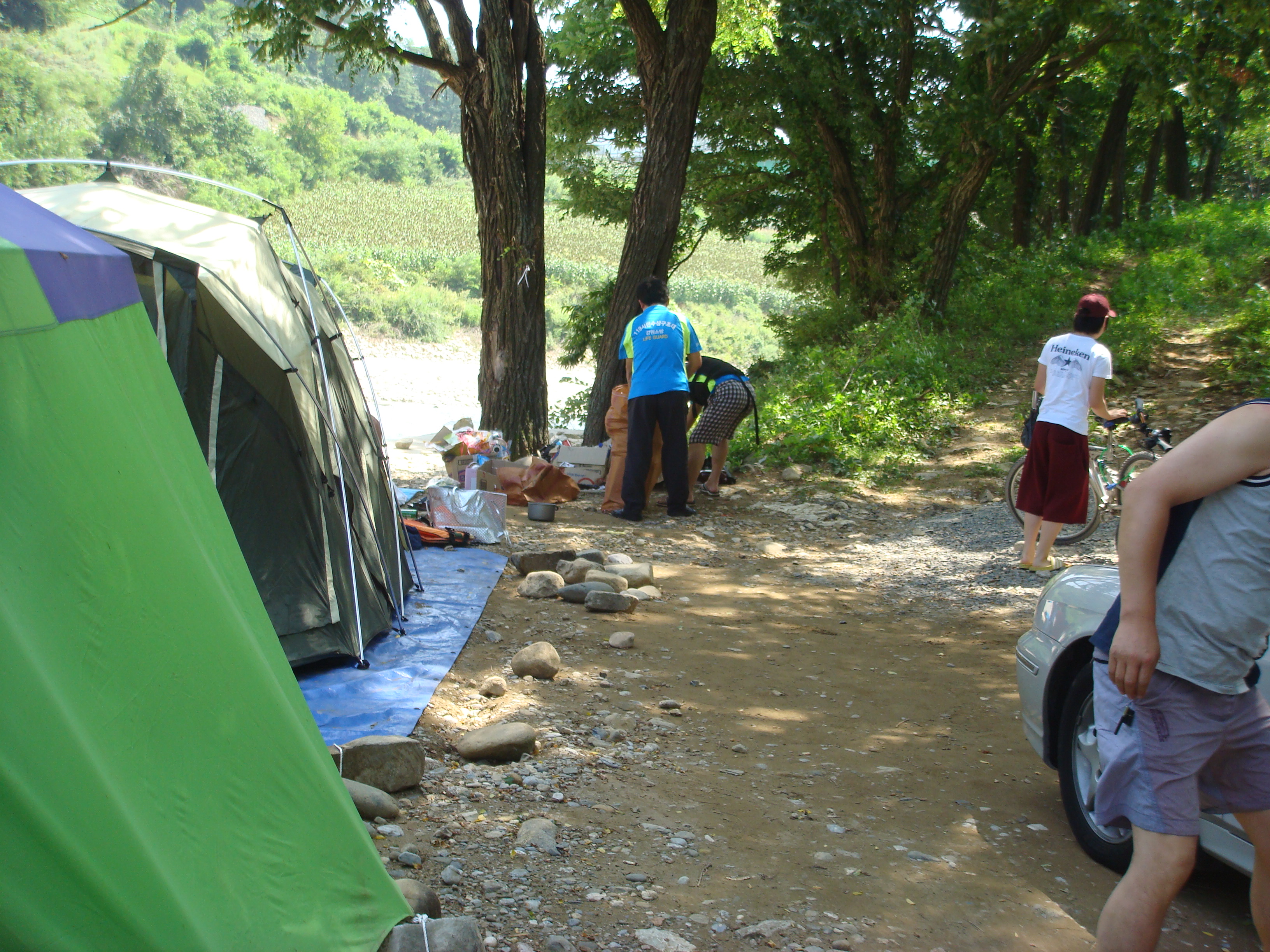 피서객들이 버리고간 각종 쓰레기들을 분리수하며