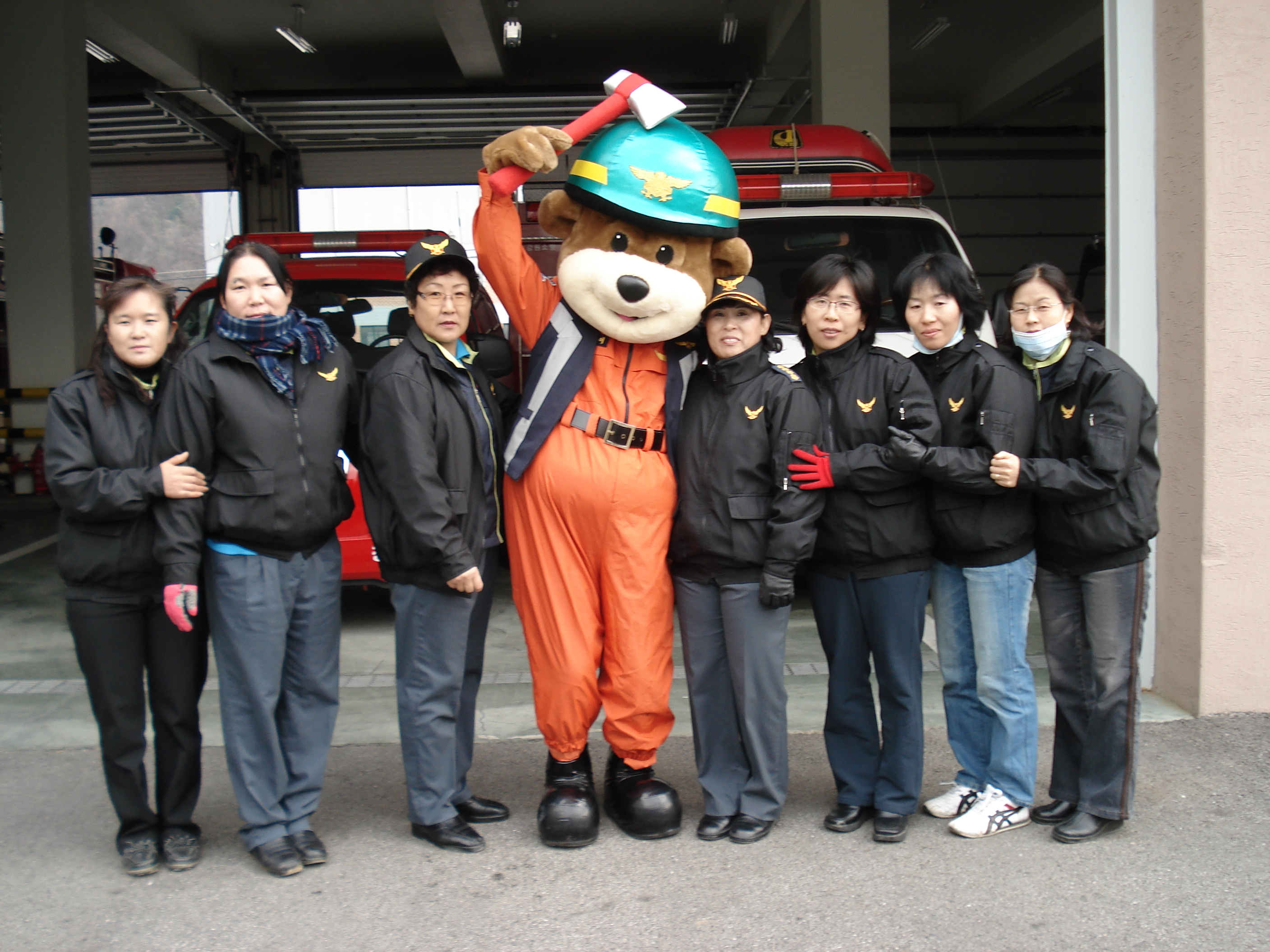 곰돌이소방관에게 "화이팅"을 외쳐주면서 격려했다.