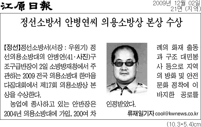 안병연반장은 "개인의 영광이나 정선의용소방대 모든