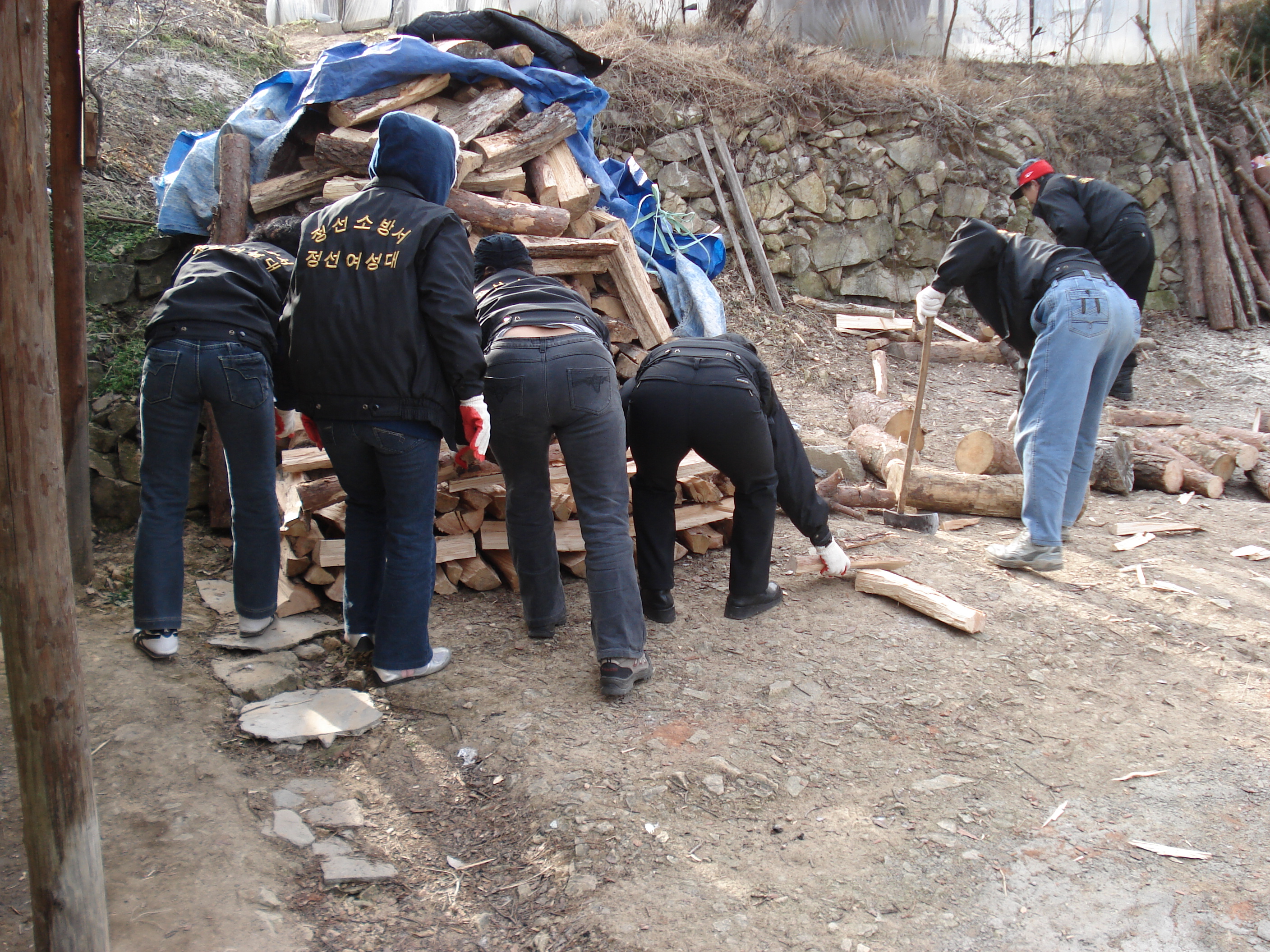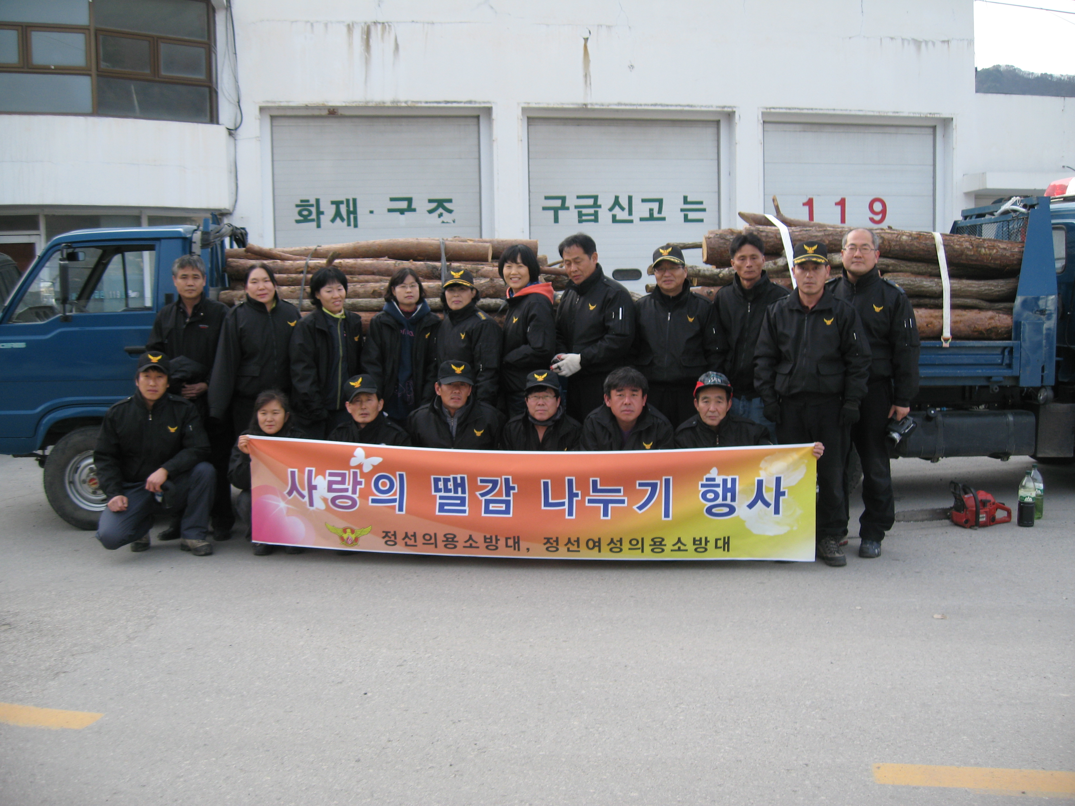 정선의용소방대에서는 열심히 장작을 만들었습니다.