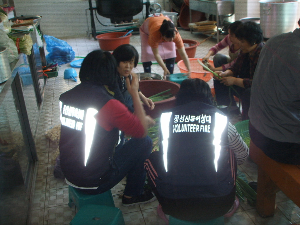 그래서 우리 신동여성의용소방대에서 음식을 준비하는 과정입니다.