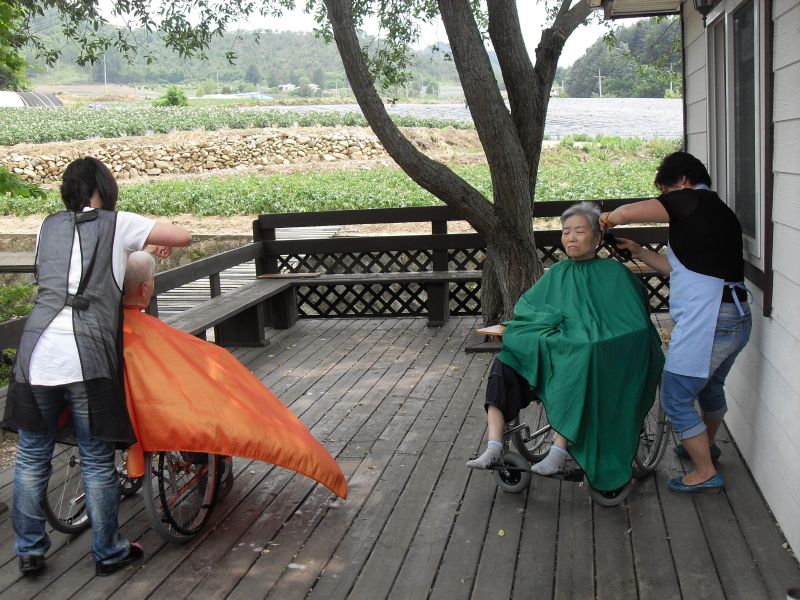 이번에도 여성의용소방대원분들이 요양원을 찾으셔서 이발봉사를 하셨네요.