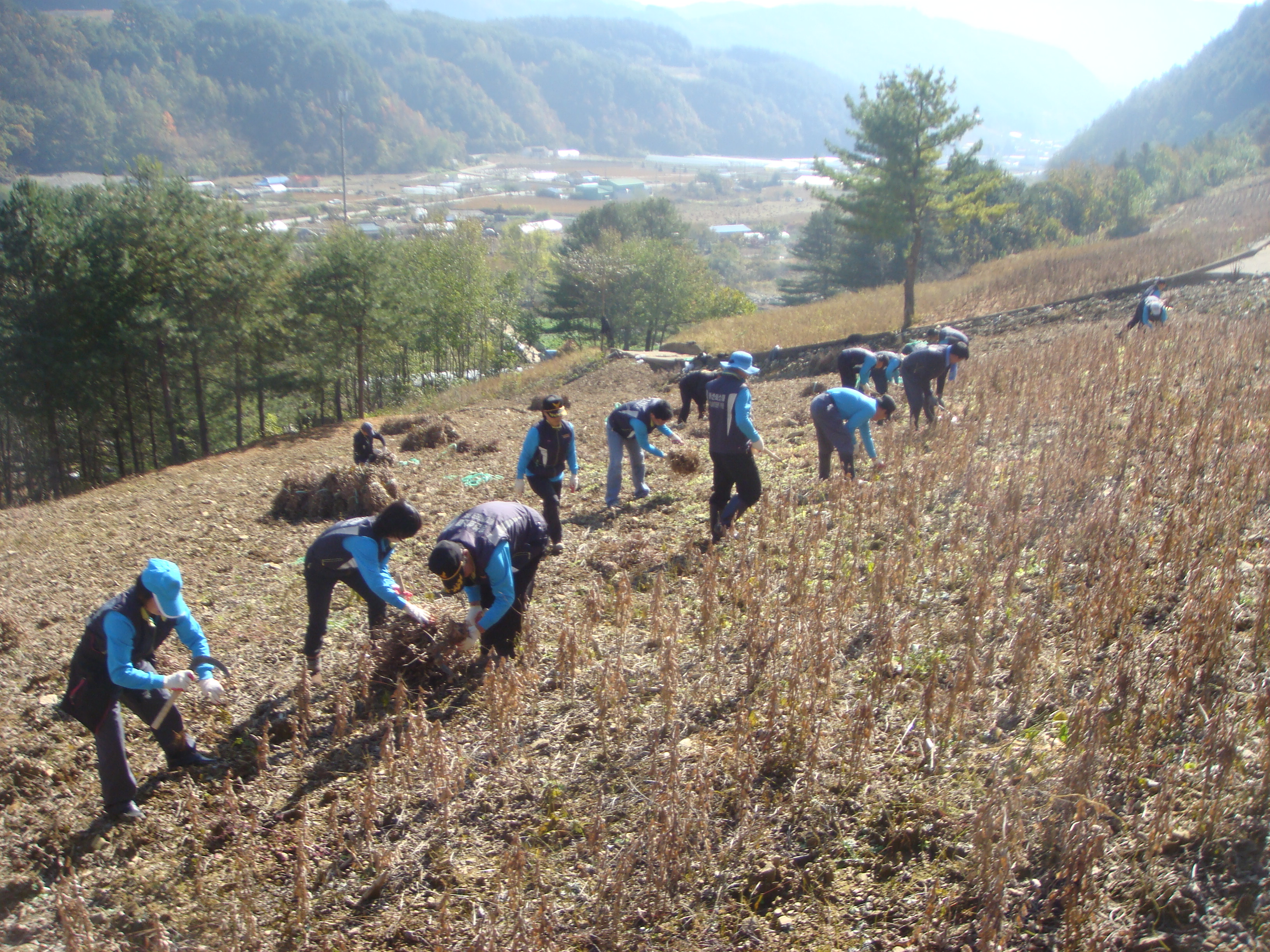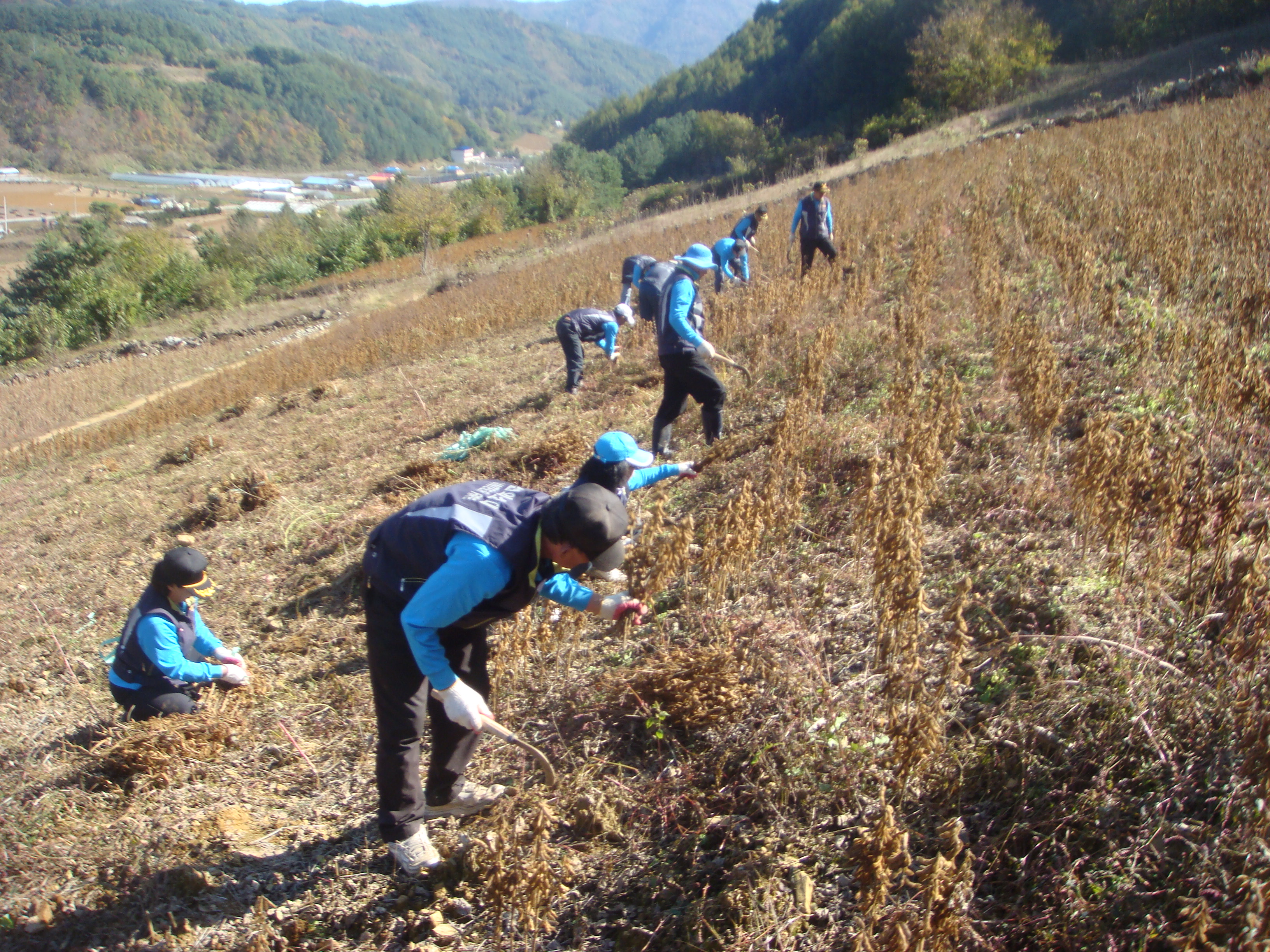정선의용소방대(대장:박진호) 정선여성의용소방대(대장: 장순자) 남, 여 대원 20여명은 10월19일 평일에도 불구하고 아침부터 잡업도구를 챙겨 정선읍 용탄리 장마을앞 농가 콩밭에서 2.500여평의 콩꺽기를 실시하였다.