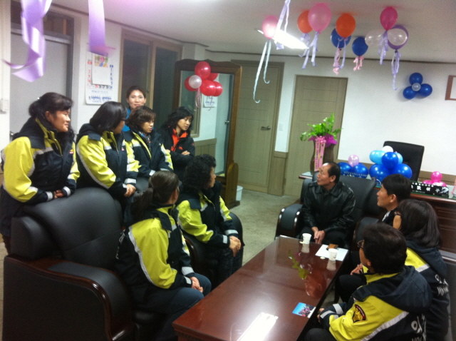 정선여성의용소방대(대장 장순자) 에 12월 13일 서장님과 직원들이 사무실에 방문하여 야간대기근무에 대원들의 노고와 소방 안전에 만전을 기해달라는 말씀을 하셨다.