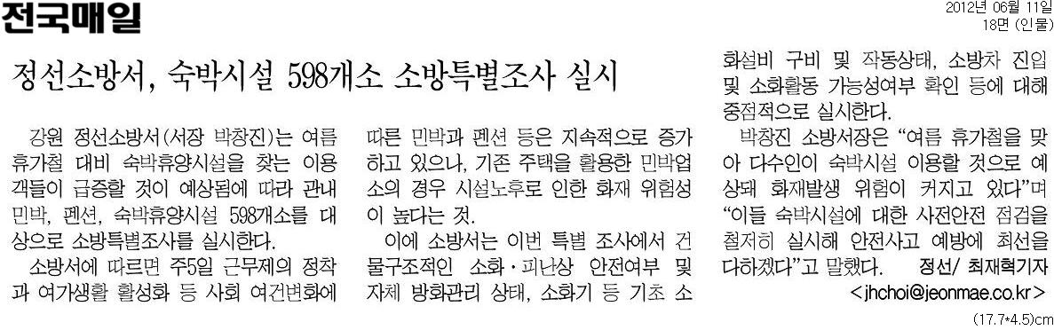 20120611[전국매일]_정선소방서,_숙박시설_598개소_소방특별조사_실시-인물_18면.jpg