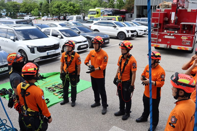 ➤ 주요 훈련 내용은 ▲ E/V 고립 구조 요령 ▲ E/V 승강기 위치별 구조 방법 ▲ 하강기 및 등반기 특성 및 사용법 ▲ 등반 및 하강 실습 등이다.