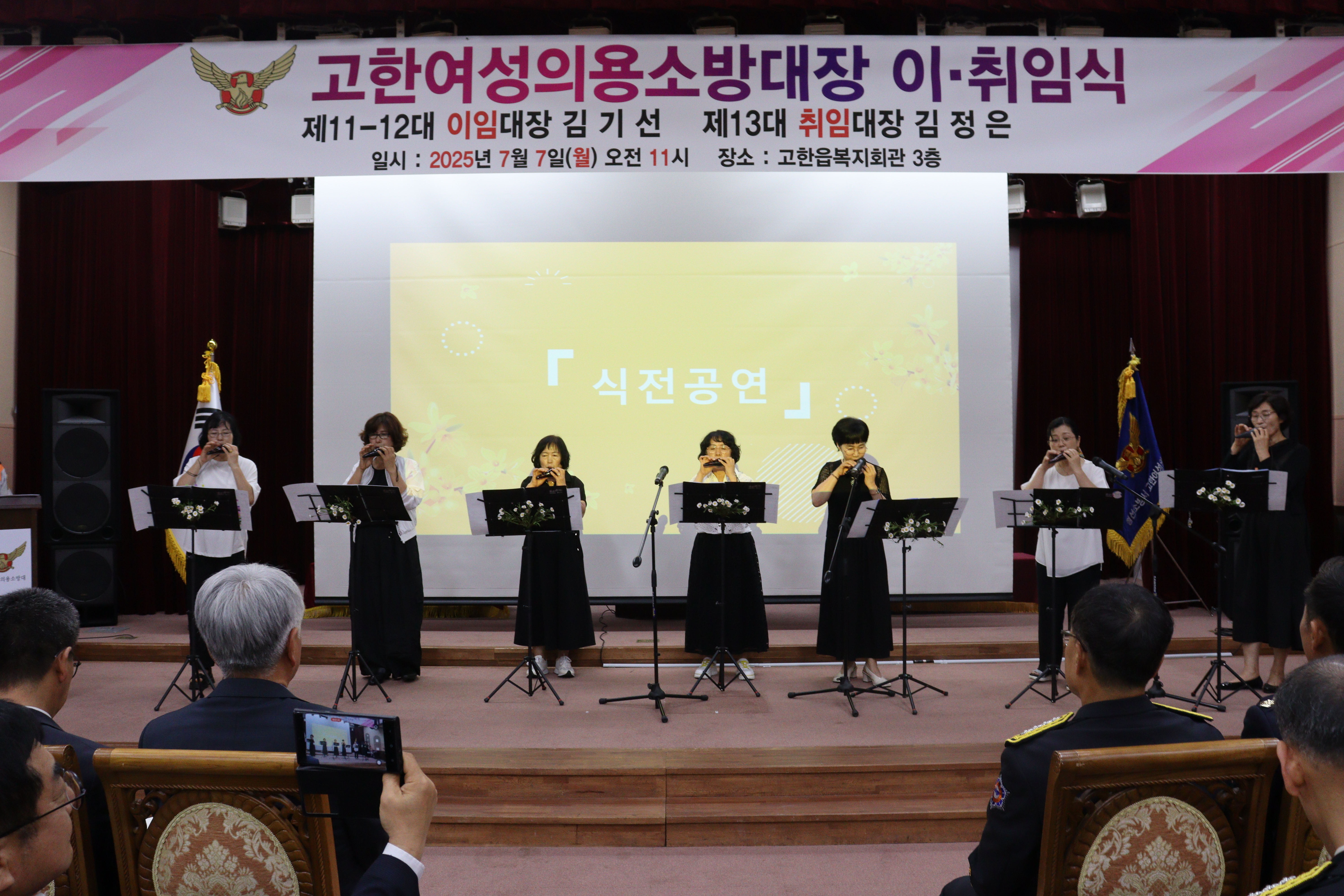➤ 이번 이‧취임식은 지역사회 안전을 위해 헌신해 온 김기선 제11~12대 대장의 이임과, 새로운 리더십으로 의용소방대를 이끌 김정은 제13대 대장의 취임을 기념하는 자리로 마련되었으며,